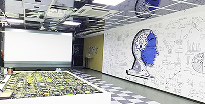 晟跡創意在鼓樓區產業規劃中心中負責多媒體總包工作,運用觸摸屏互動、虛擬迎賓、多點觸控查詢、墻面投影互動系統、VR漫游、沉浸式環形弧幕等多媒體技術將鼓樓的歷史人文、產業規劃、區域位置等優勢展示出來。