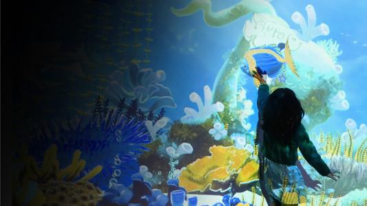 晟跡創(chuàng)意互動涂鴉分為:海洋互動涂鴉、森林互動涂鴉兩個場景,利用AR技術(shù),采用即時視頻動作捕捉技術(shù)、影像識別、壓感傳感器等交互技術(shù)營造一種奇幻動感的交互體驗,增加展覽科技含量,提高展覽現(xiàn)場人氣度。