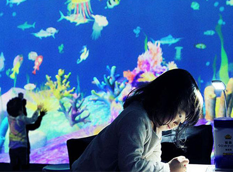 墻面互動投影是一種全新的投影方式,給現(xiàn)代展廳空間帶來了動態(tài)游戲樂趣以及生氣和活力。