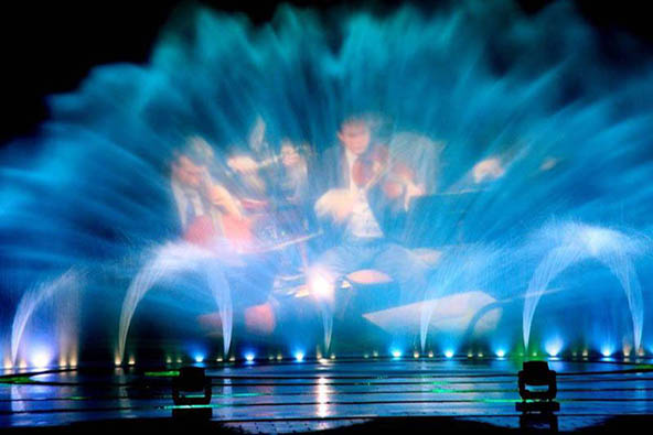 霧幕投影是一種全新的空氣成像設備。該設備利用海市蜃樓的成像原理借助空氣中存在的微粒將光影圖像呈現。使用一層很薄的水霧墻代替傳統的投影幕,讓參觀者可以在該屏幕影像中隨意穿梭,達到真人可進入視頻畫面的虛幻效果。在迷茫的霧屏上,放映如幻似真的神話故事。將帶給觀眾美妙絕倫的視聽體驗。